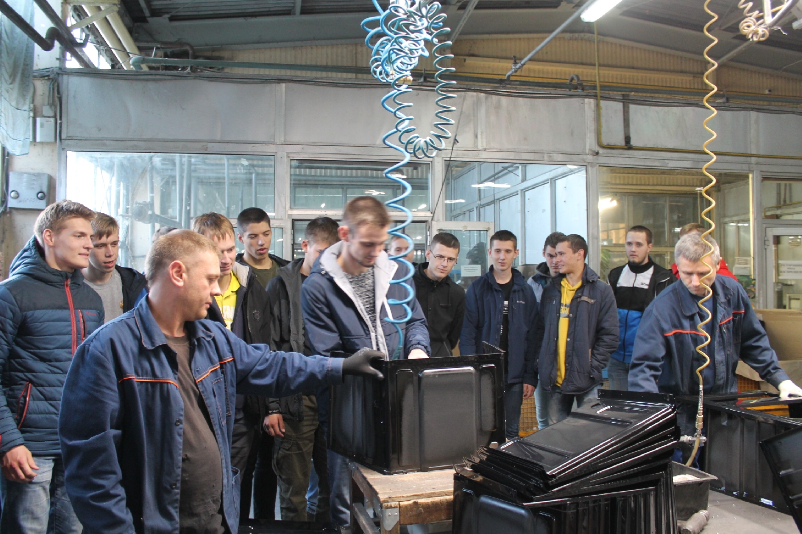 Студенты увидели рабочее место инженера-технолога АО «ППО ЭВТ им. В.А. Ревунова» и инженера-конструктора ООО «СВАР». Также для всех гостей были подготовлены экскурсии по производственным цехам. Первая проходила на слесарно-механическом участке производственного объединения, а вторая состоялась в ООО «СВАР». Там же для студентов был организован мастер-класс по сборке товаров народного потребления.