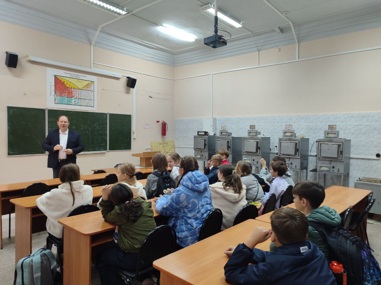 К.т.н., доцент Логинов О.Н. познакомил школьников с направлением подготовки 15.03.01 «Машиностроение» профиль «Оборудование и технология сварочного производства», со специальностью инженер-технолог сварочного производства рассказал об основных видах сварки, их достоинствах и областях применения. Школьники познакомились с оснащением учебных лабораторий кафедры.