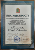 Благодарность Законодательного Собрания Пензенской области объявлена Олегу Голотенкову, доценту кафедры «Сварочное, литейное производство и материаловедение» Поздравляем!
